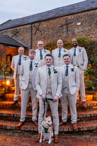 Will had free range to pick his suit he went with a beige tone with dark green accessories to match with the bridesmaids, Will opted for a different waistcoat to the groomsmen and I gifted him a pocket watch on the wedding morning to really tie it all together!
